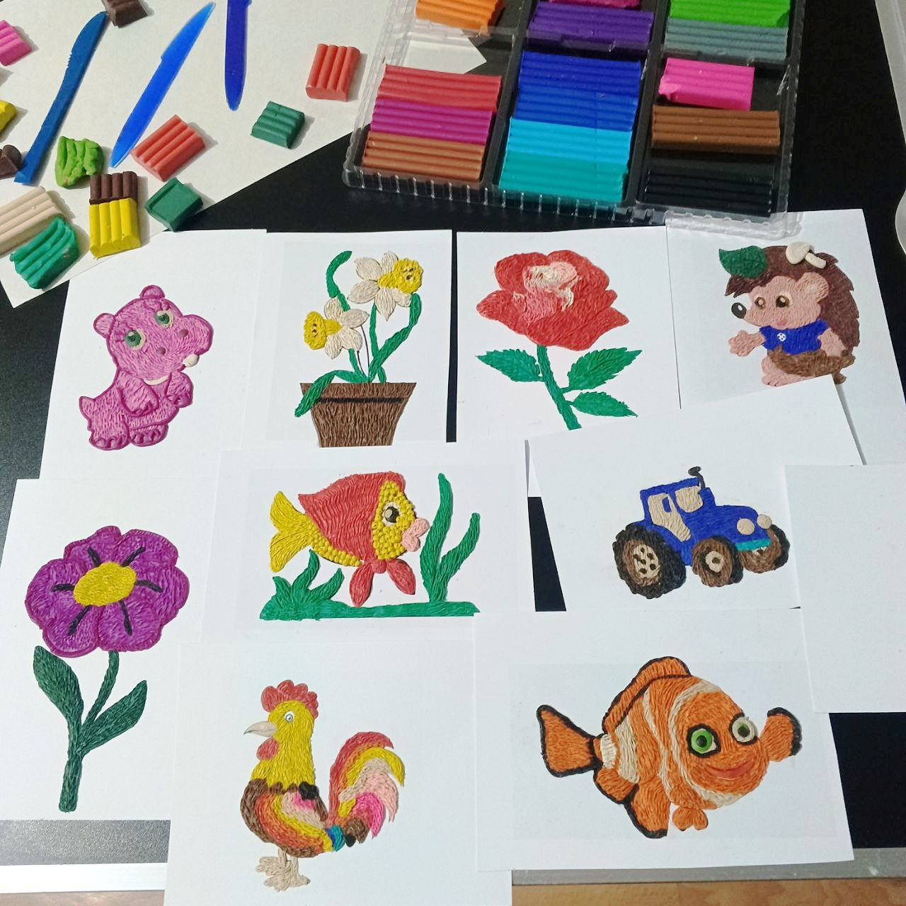 Мастер-класс проходит в тёплой и дружелюбной атмосфере. Каждый участник получает все необходимые материалы: основу для картины (плотный картон или холст), мягкий пластилин разных цветов, стеки для работы, текстурные инструменты и дополнительные элементы для декора. Мастер подробно объяснит этапы работы: от создания эскиза до финального оформления. Вы сможете выбрать готовый макет или создать свой уникальный дизайн.